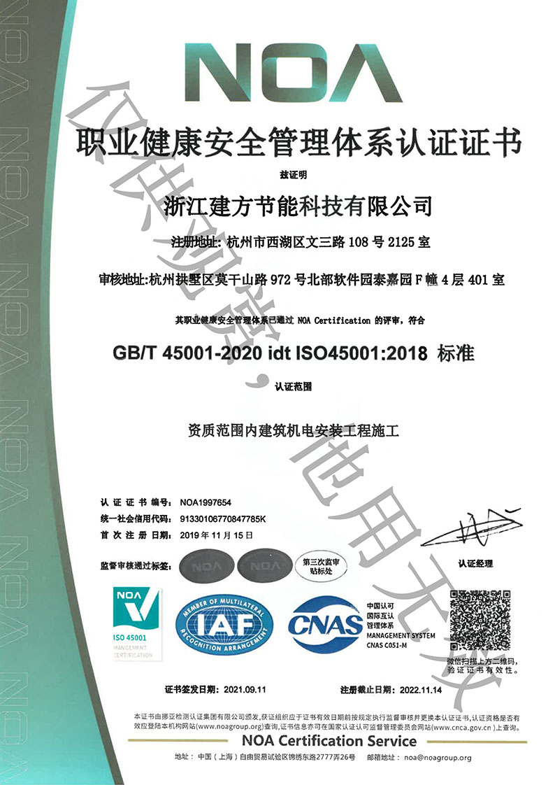 職業(yè)健康安全體系認(rèn)證證書(shū)
